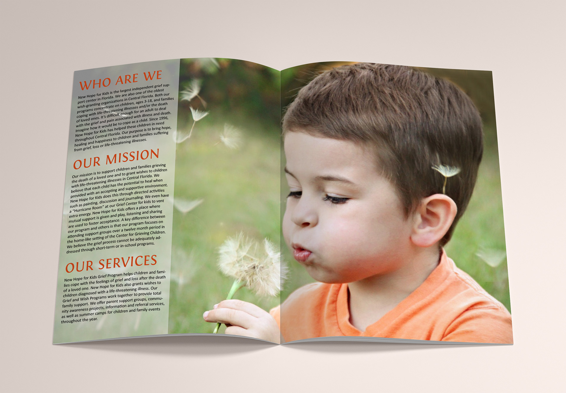 Print design for the annual report booklet for the non profit New Hope For Kids